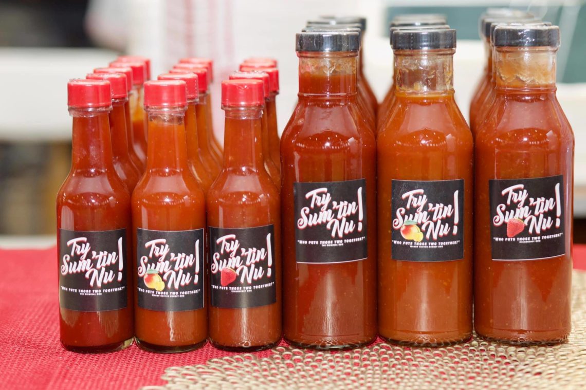 The sauces reflect our approach to food. Our food is for people that eat the same old thing! We desire to open them up to Try Sum’tin Nu!